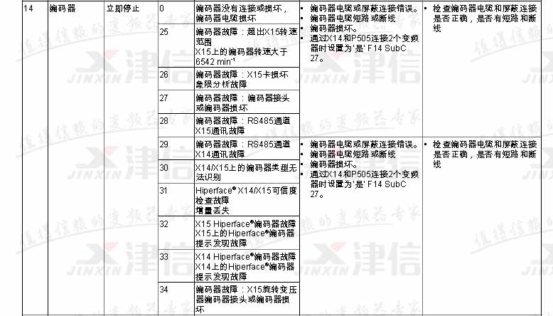SEW變頻器故障代碼F14,具體如下: